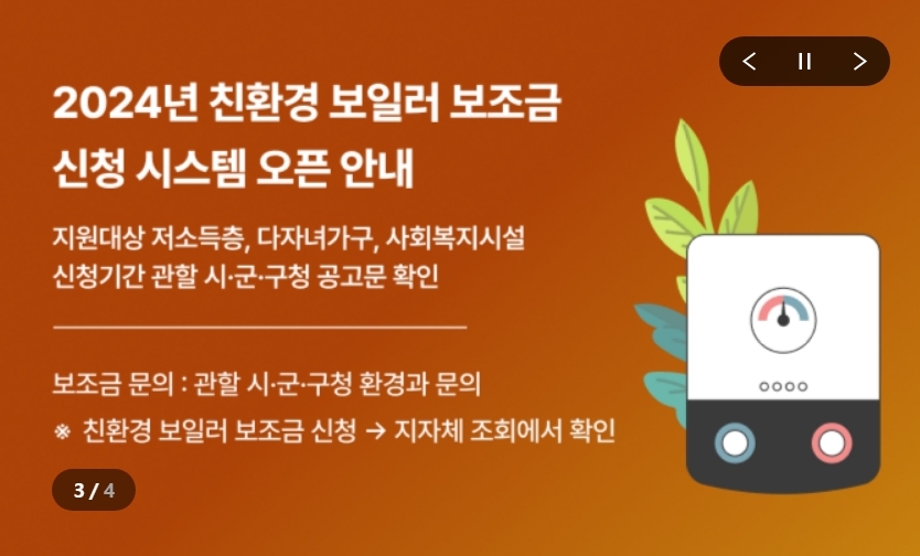 노후보일러는 에너지 효율도 떨어지고, 이산화탄소 배출도 많기 때문에 환경부나 지자체에서 우선적으로 교체 지원을 하고 있어요.
